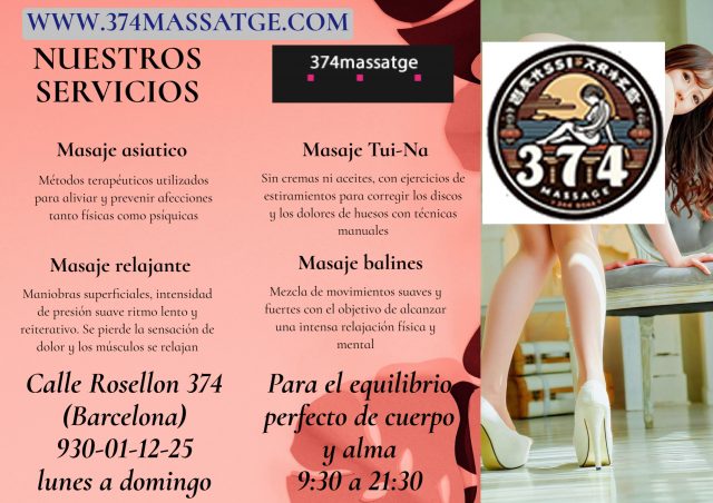 En 374Massatge Barcelona seguimos abiertos todo el mes de agosto para que puedas disfrutar de un masaje de calidad cuando más lo necesites. Nuestro centro combina técnicas tradicionales asiáticas y terapias modernas para ofrecerte una experiencia única de relajación, bienestar y equilibrio.